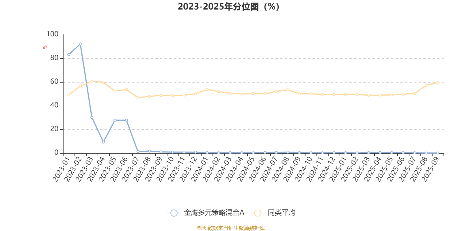 通过所选区间该基金净值增长率分位图,可以观察该基金与同类基金业绩比较情况。图为坐标原点到区间内某时点的净值增长率在同类基金中的分位数。