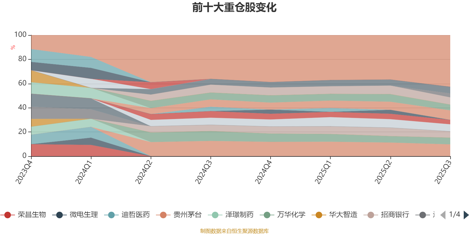 该基金持股集中度较高。截至2025年三季度末,基金十大重仓股分别是贵州茅台、恒瑞医药、中国平安、比亚迪、万华化学、三一重工、招商银行、长江电力、保利发展、工业富联。