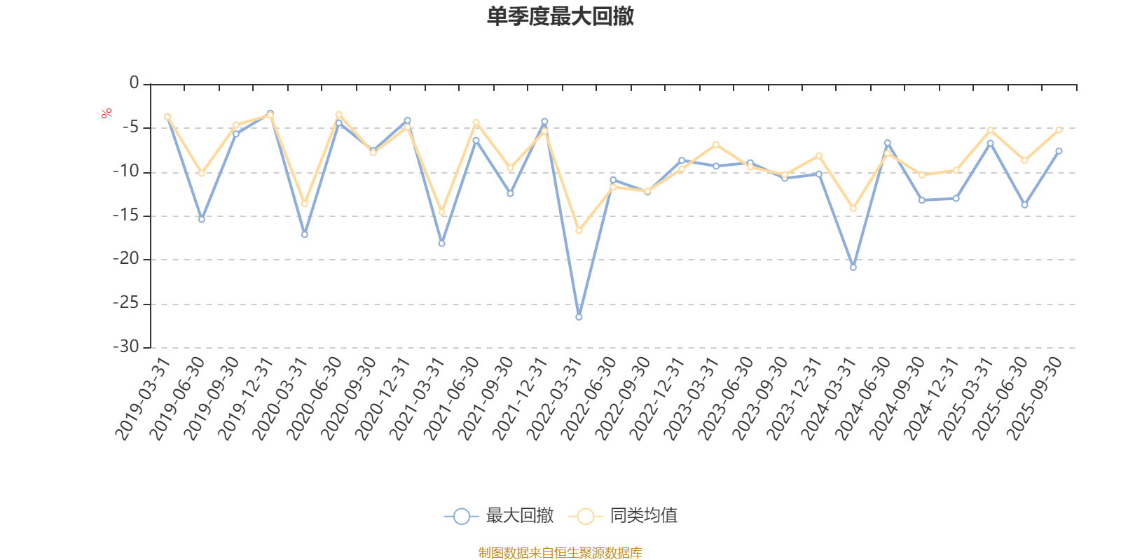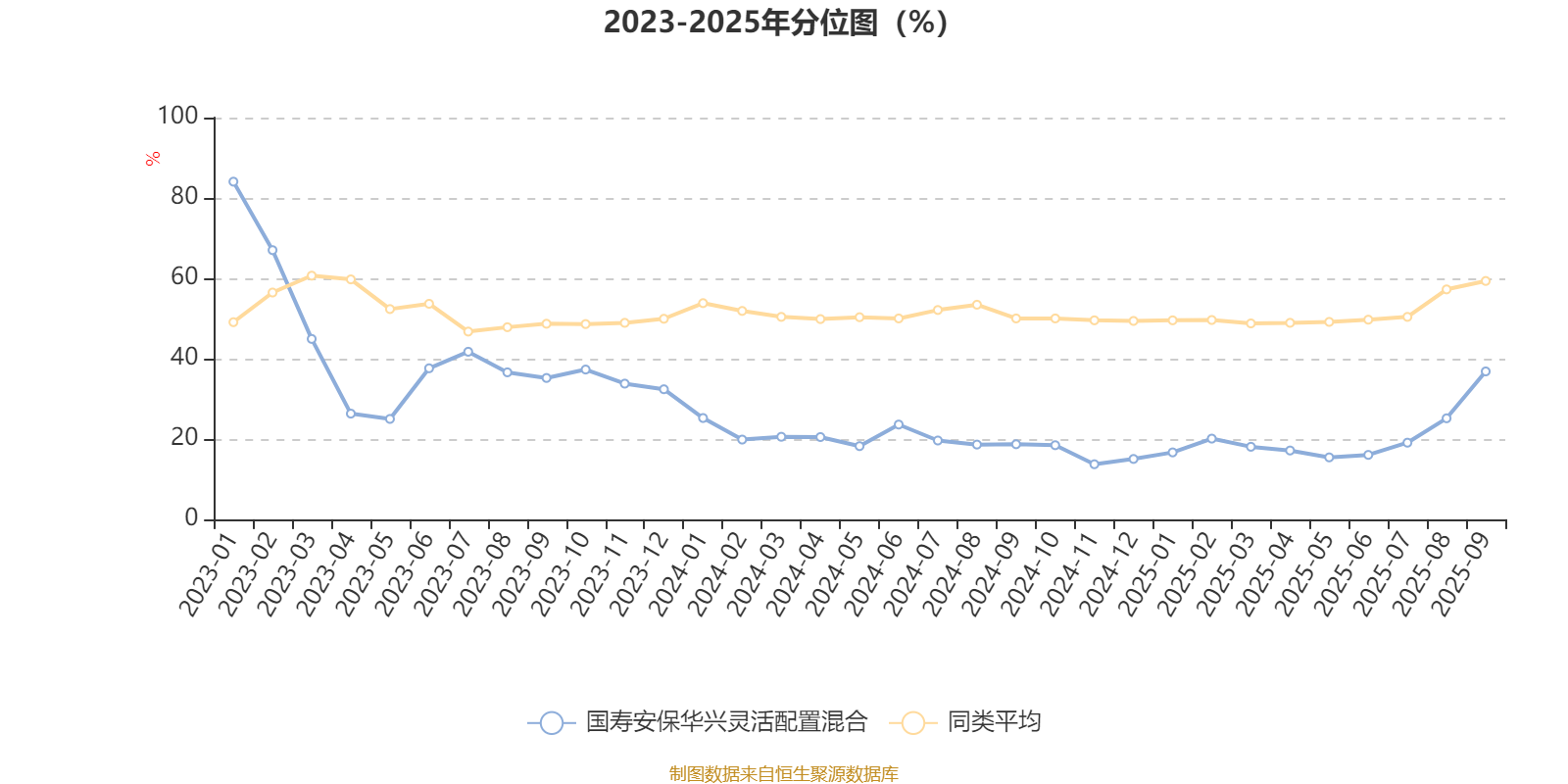 通过所选区间该基金净值增长率分位图,可以观察该基金与同类基金业绩比较情况。图为坐标原点到区间内某时点的净值增长率在同类基金中的分位数。
