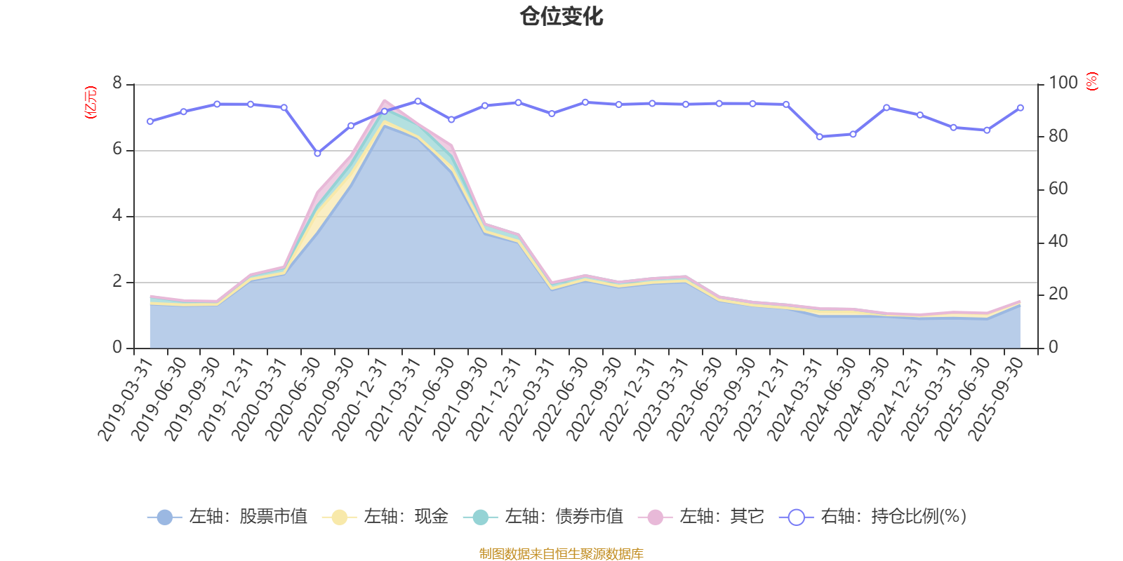 据定期报告数据统计,近三年平均股票仓位为88.37%,同类平均为72.35%。2021年一季度末基金达到93.55%的最高仓位,2020年上半年末最低,为73.79%。
