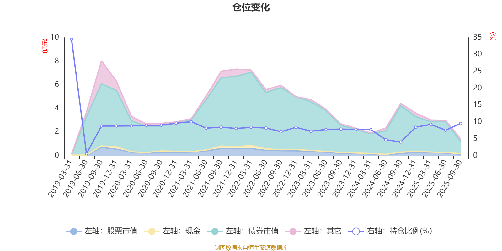 据定期报告数据统计,近三年平均股票仓位为7.56%,同类平均为72.35%。2019年一季度末基金达到34.48%的最高仓位,2019年上半年末最低,为0.62%。