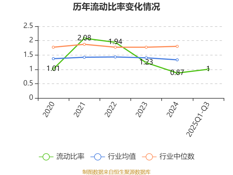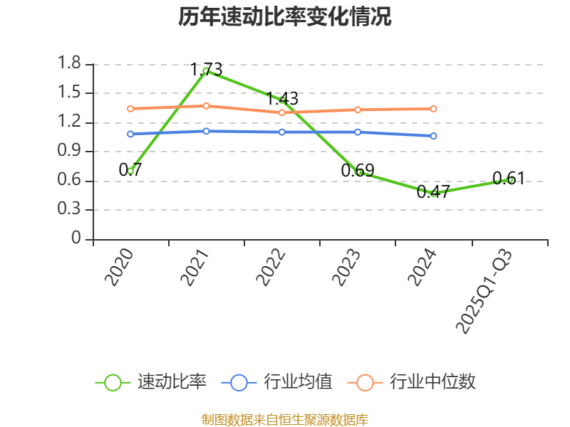 2025年前三季度,公司流动比率为1,速动比率为0.61。
