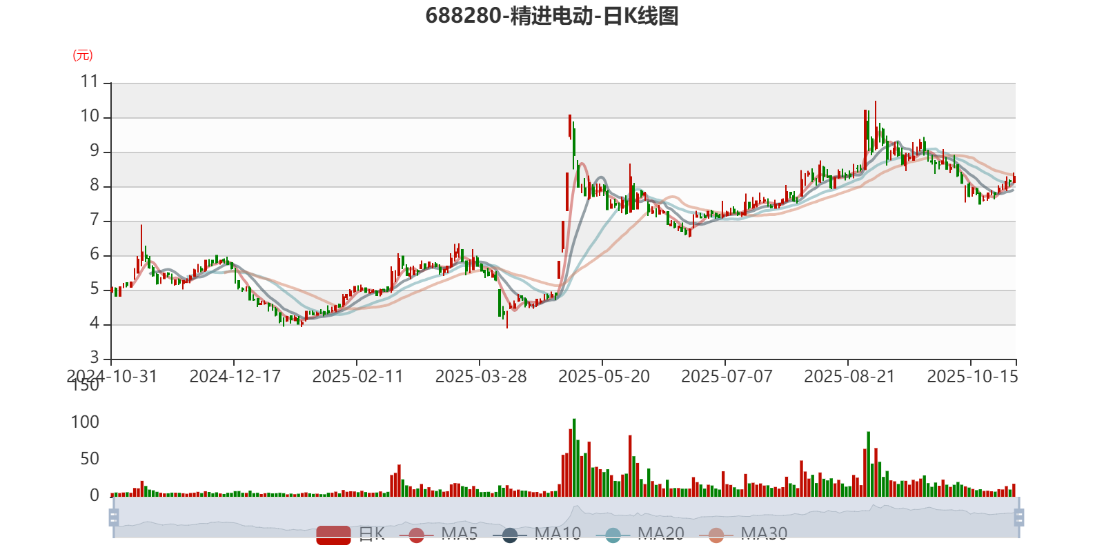 以10月30日收盘价计算,精进电动目前市盈率(TTM)约为145.64倍,市净率(LF)约7.34倍,市销率(TTM)约2.23倍。