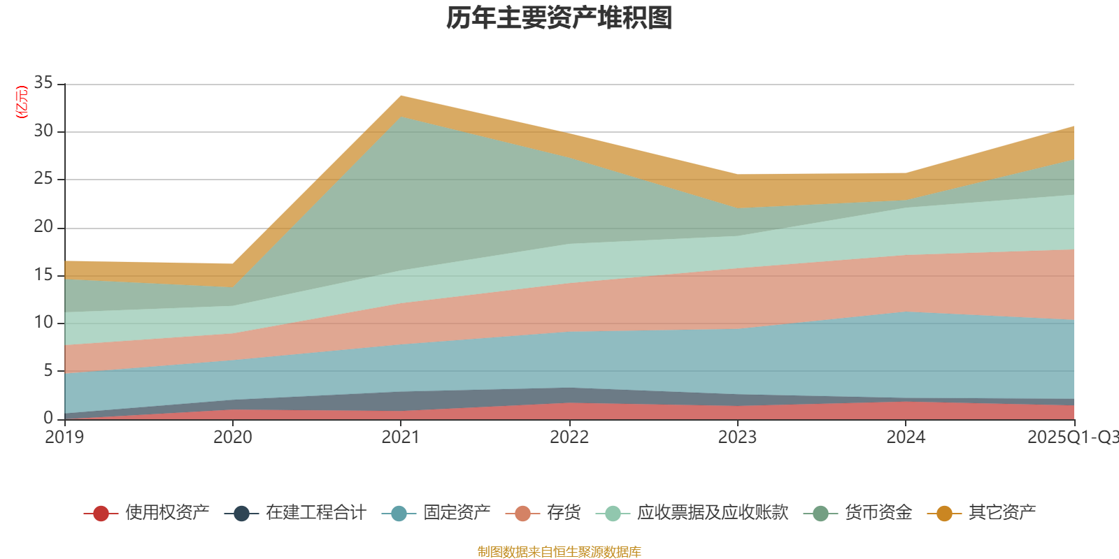 资产重大变化方面,截至2025年三季度末,公司货币资金较上年末增加371.56%,占公司总资产比重上升9.02个百分点;固定资产较上年末减少8.4%,占公司总资产比重下降8.09个百分点;应收款项融资较上年末增加1193.3%,占公司总资产比重上升3.31个百分点;使用权资产较上年末减少21.95%,占公司总资产比重下降2.46个百分点。