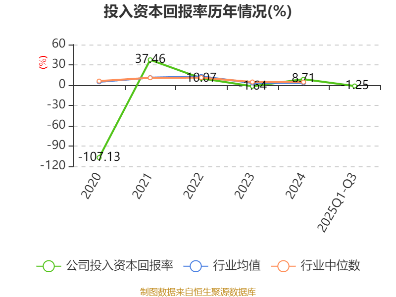 盈利能力方面, 2025年前三季度公司加权平均净资产收益率为-3.56%,同比下降9.68个百分点。公司2025年前三季度投入资本回报率为-1.25%,较上年同期下降6.99个百分点。