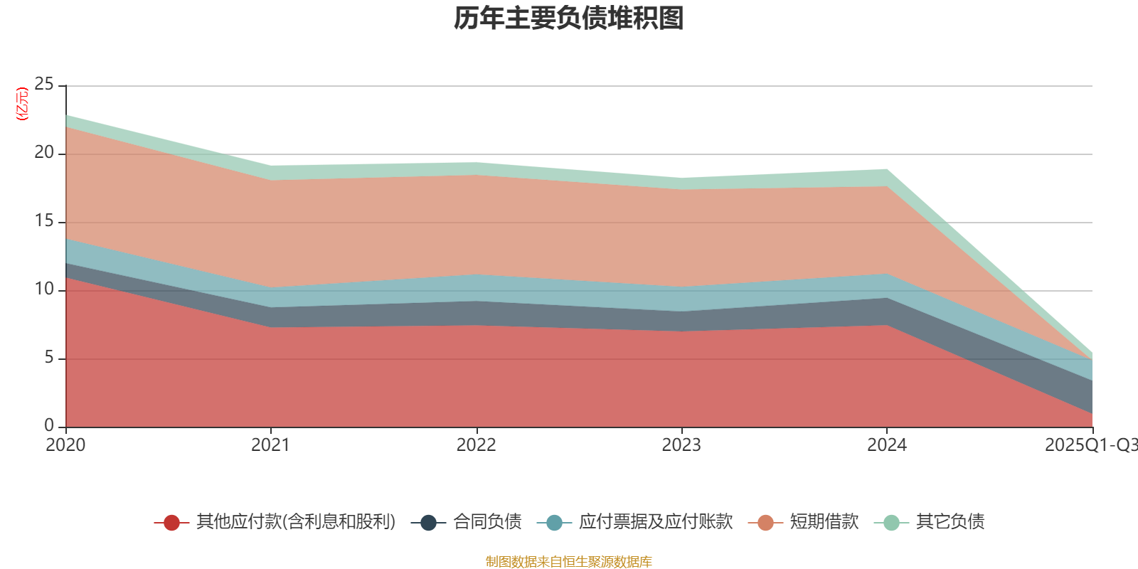 负债重大变化方面,截至2025年三季度末,公司其他应付款(含利息和股利)较上年末减少87.3%,占公司总资产比重下降30.11个百分点;短期借款较上年末减少100%,占公司总资产比重下降28.1个百分点;应付票据及应付账款较上年末减少16.34%,占公司总资产比重下降3.81个百分点;合同负债较上年末增加21.32%,占公司总资产比重下降2.28个百分点。