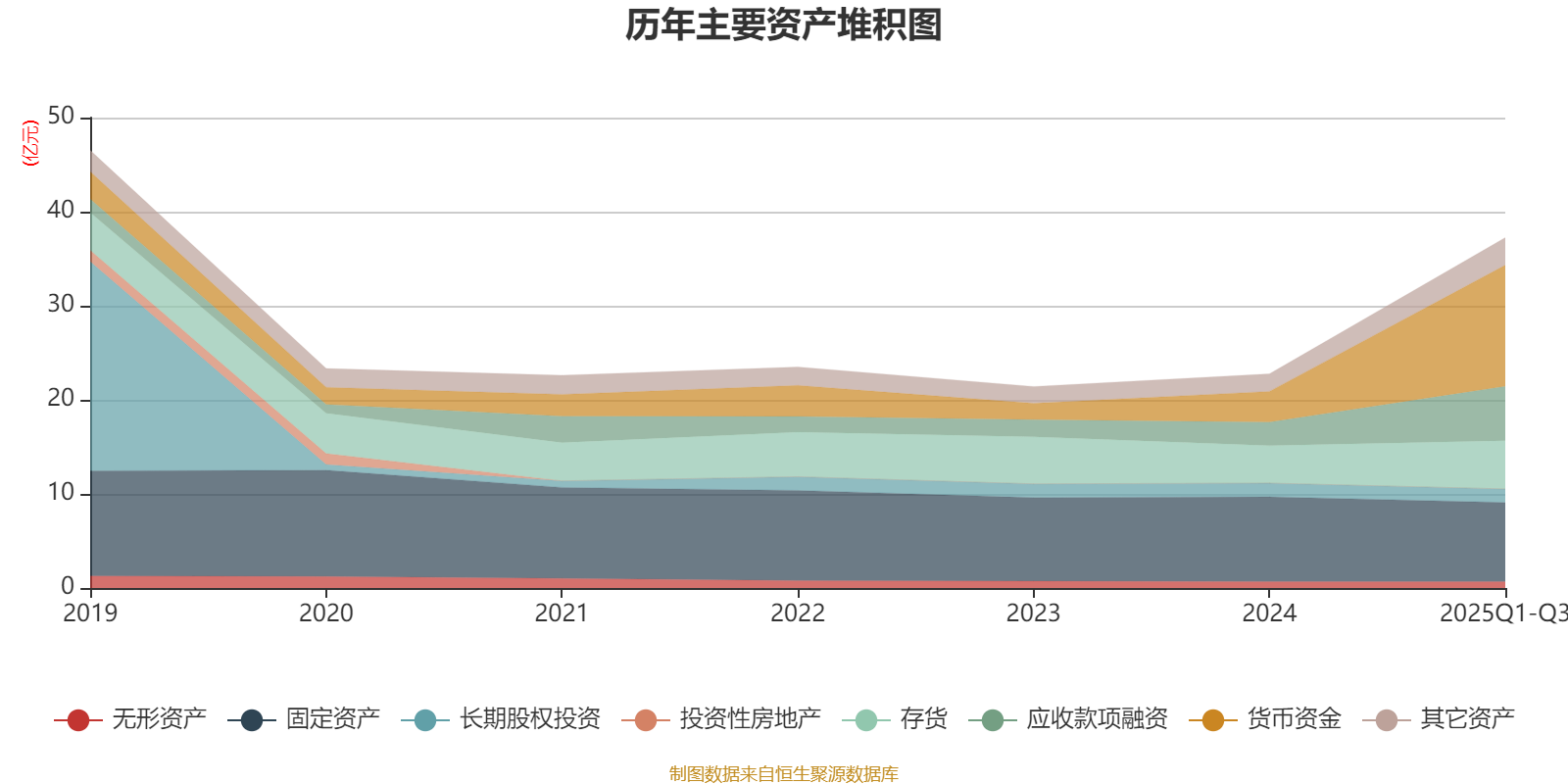 资产重大变化方面,截至2025年三季度末,公司货币资金较上年末增加293.58%,占公司总资产比重上升20.23个百分点;固定资产较上年末减少6.78%,占公司总资产比重下降17.04个百分点;应收款项融资较上年末增加130.68%,占公司总资产比重上升4.5个百分点;存货较上年末增加29.15%,占公司总资产比重下降3.67个百分点。