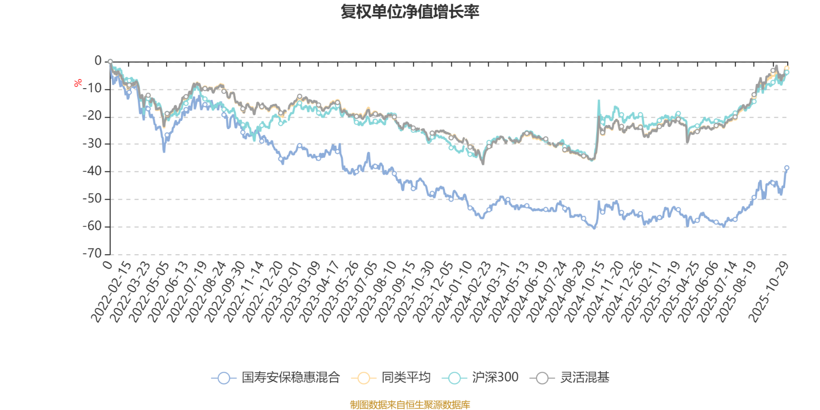 截至10月29日,国寿安保稳惠混合近三个月复权单位净值增长率为29.71%,位于同类可比基金180/1287;近半年复权单位净值增长率为44.20%,位于同类可比基金229/1287;近一年复权单位净值增长率为30.24%,位于同类可比基金489/1287;近三年复权单位净值增长率为-15.29%,位于同类可比基金1207/1286。