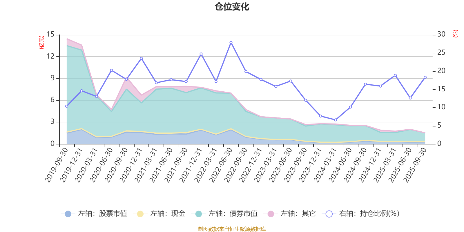 基金管理人在三季报中表示,尤为重要的是,本轮在周期低点同时,行业龙头企业的估值也处于相对合适水平,提供了较好的估值安全垫。食品饮料短期仍受整体消费环境制约有所承压,但从估值层面基本已经有所反应,部分优质公司当前估值相对合理,有一定配置价值。机械设备行业主要增配的是工程机械,受益于国内更新周期以及海外周期的启动,行业的业绩确定性相对较高,行业龙头公司估值整体也较为合适,具备较好的投资价值。债券部分仍以高等级信用债为主要配置对象,适度降低了杠杆比例,小幅调降了久期。希望通过股债混合配置,在产品的收益性和风险性中间取得一个平衡,为持有人贡献长期稳健回报。