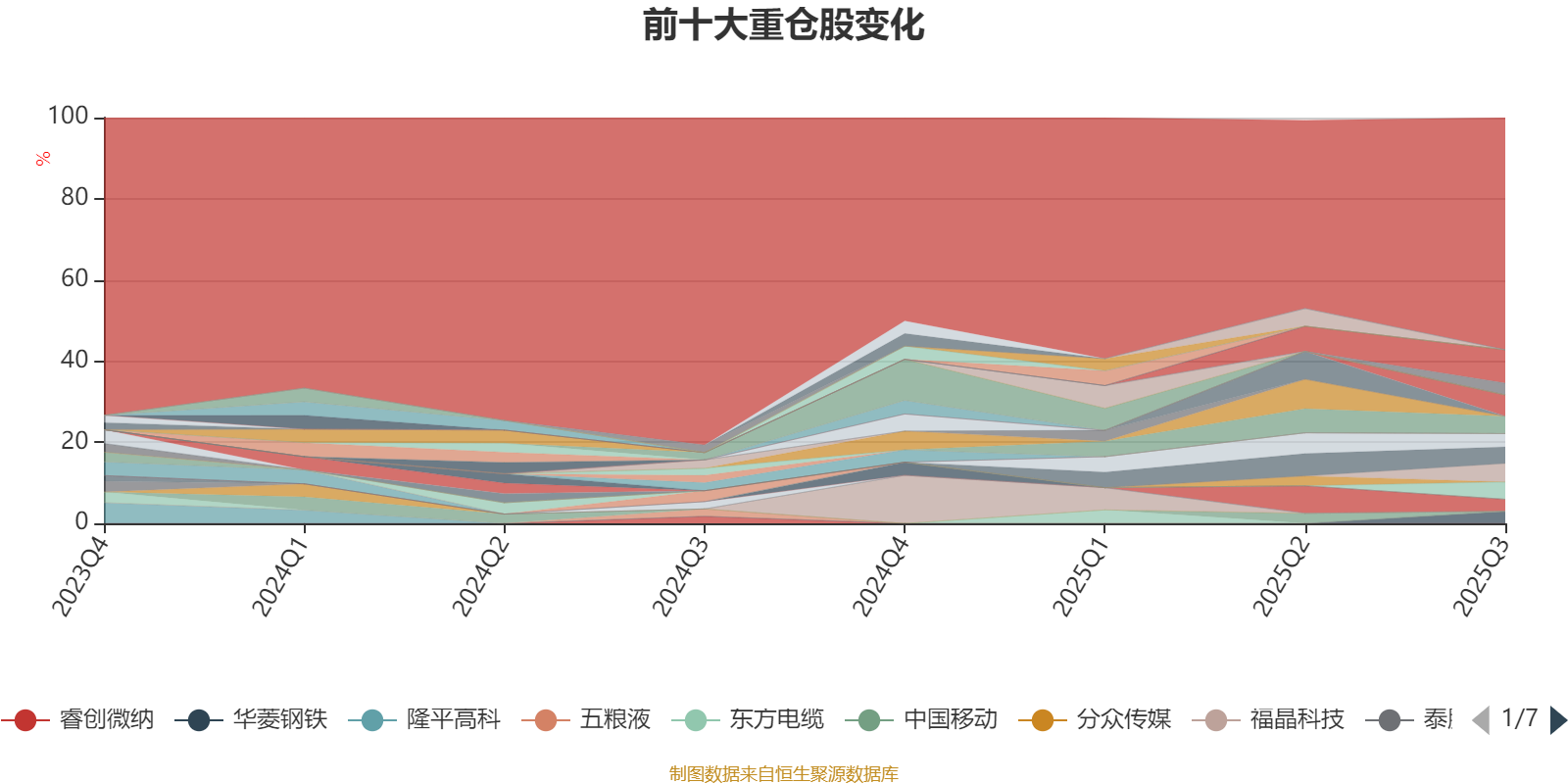 截至2025年三季度末,基金十大重仓股分别是阿里巴巴-W、徐工机械、上海复旦、菲利华、建设银行、工商银行、农业银行、华菱钢铁、航材股份、牧原股份。