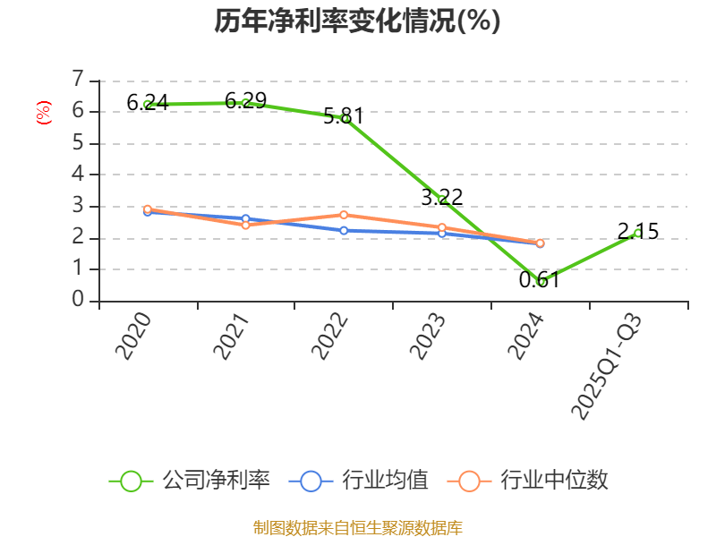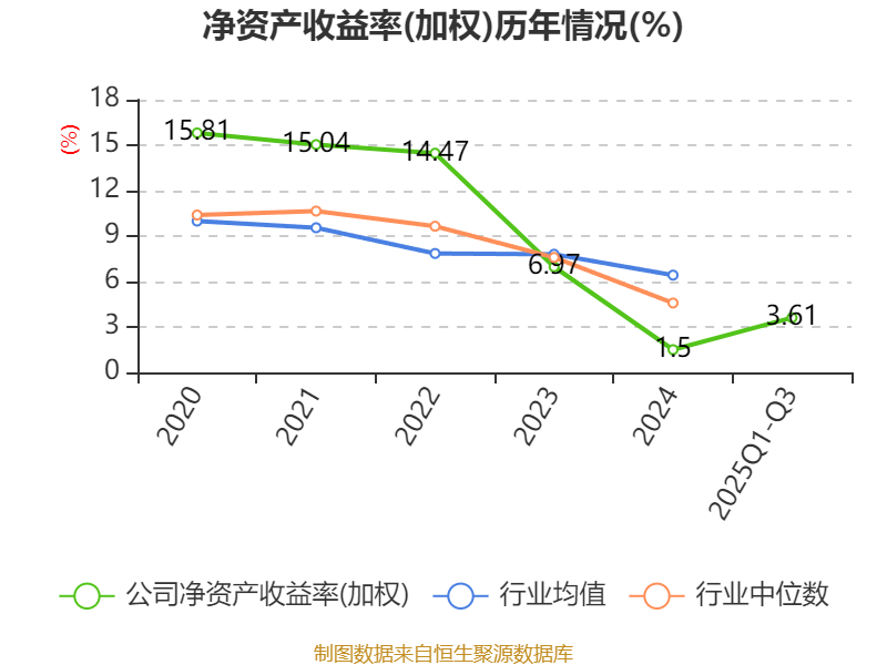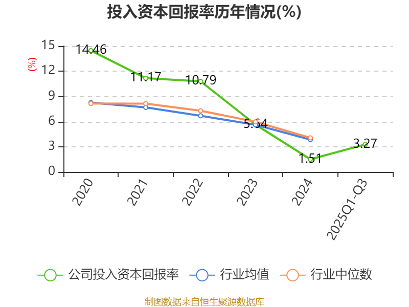 盈利能力方面, 2025年前三季度公司加权平均净资产收益率为3.61%,同比下降0.14个百分点。公司2025年前三季度投入资本回报率为3.27%,较上年同期下降0.06个百分点。