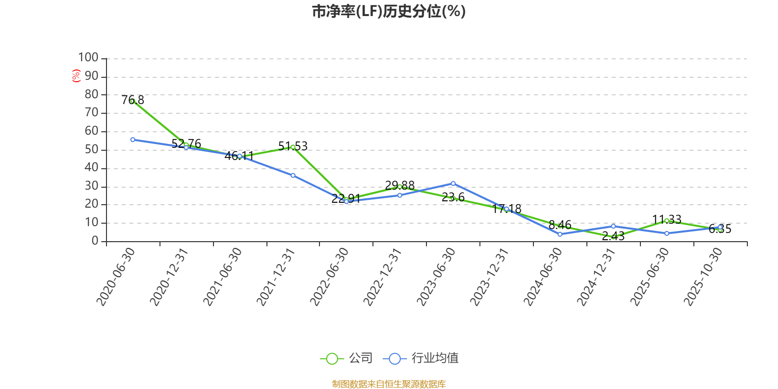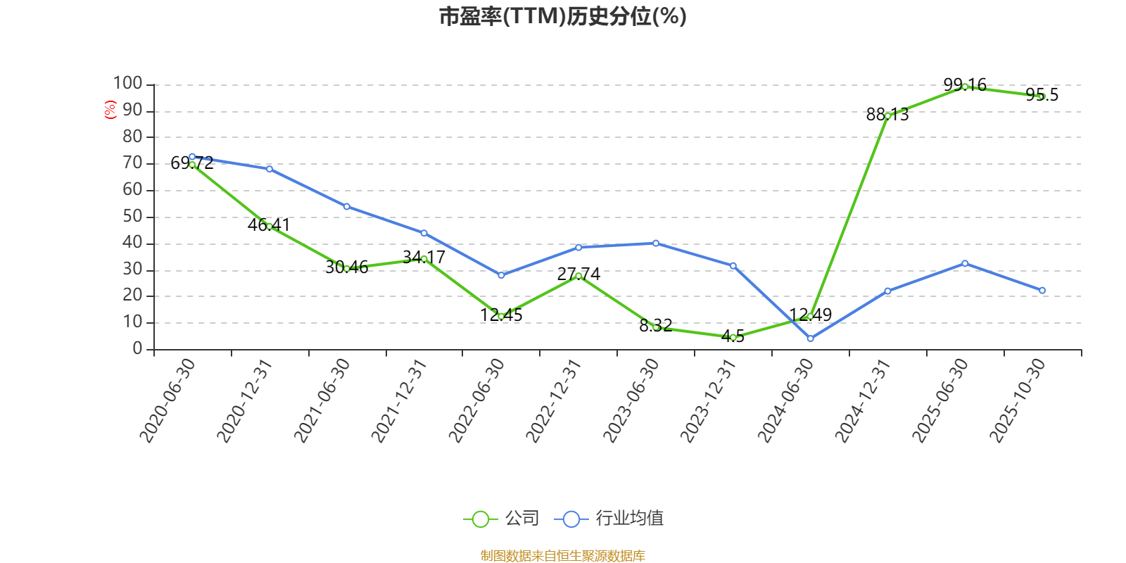 市盈率、市净率为负时,不显示当期分位数,会导致折线图中断。