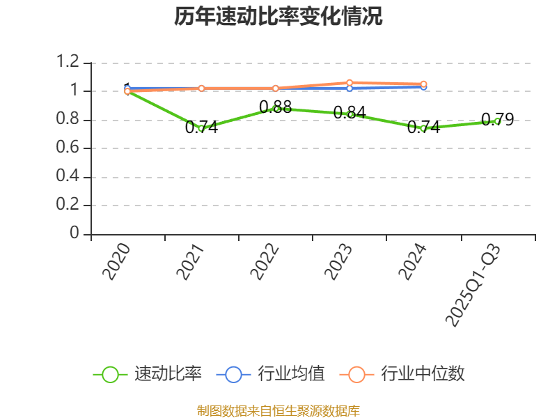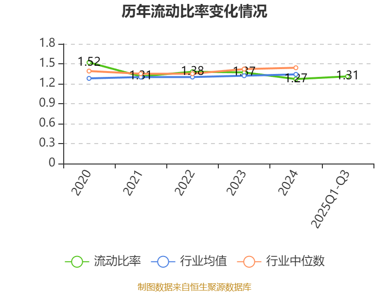 2025年前三季度,公司流动比率为1.31,速动比率为0.79。