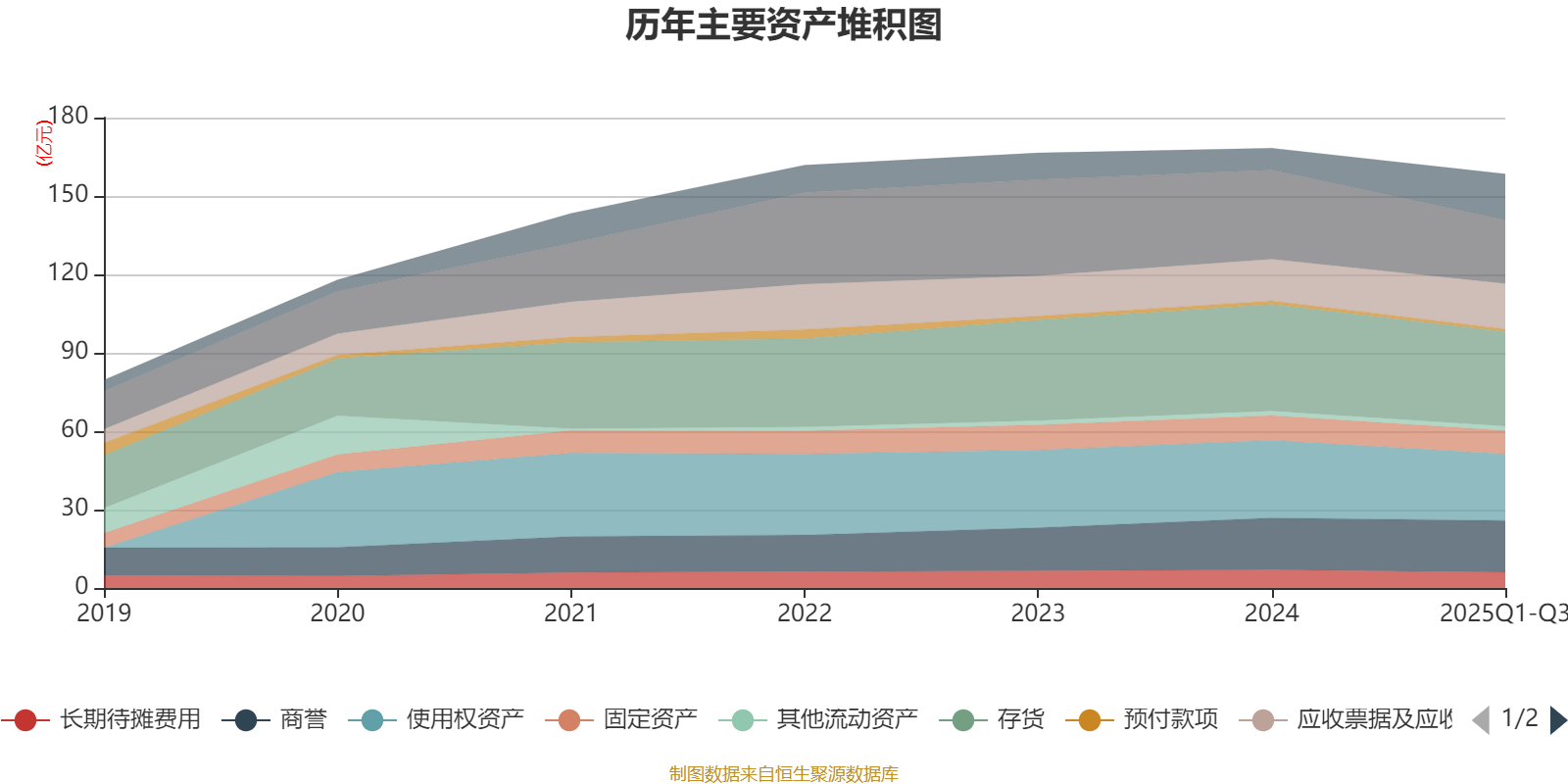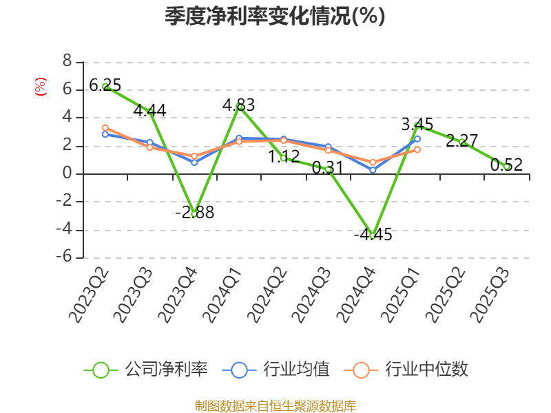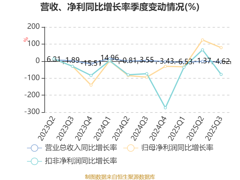 资产重大变化方面,截至2025年三季度末,公司货币资金较上年末减少28.83%,占公司总资产比重下降4.95个百分点;交易性金融资产合计占公司总资产的4.83%,上年末为0;使用权资产较上年末减少14.41%,占公司总资产比重下降1.6个百分点;应收票据及应收账款较上年末增加9.02%,占公司总资产比重上升1.49个百分点。