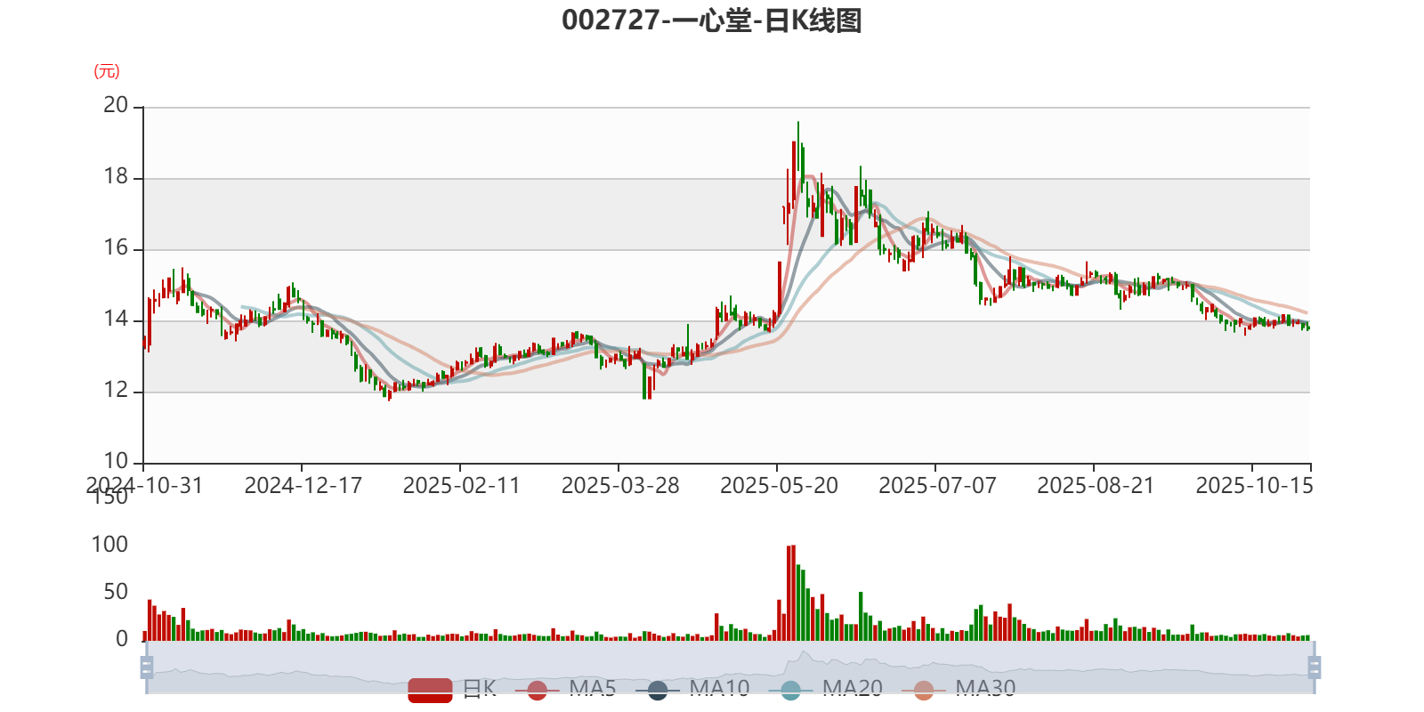 以10月30日收盘价计算,一心堂目前市盈率(TTM)约为89.37倍,市净率(LF)约1.1倍,市销率(TTM)约0.46倍。