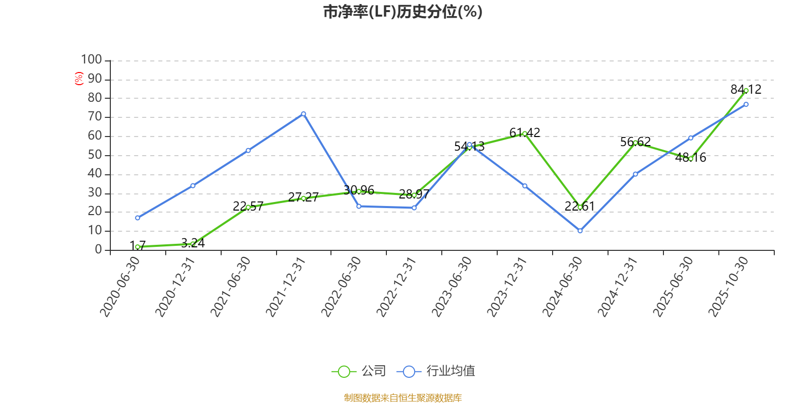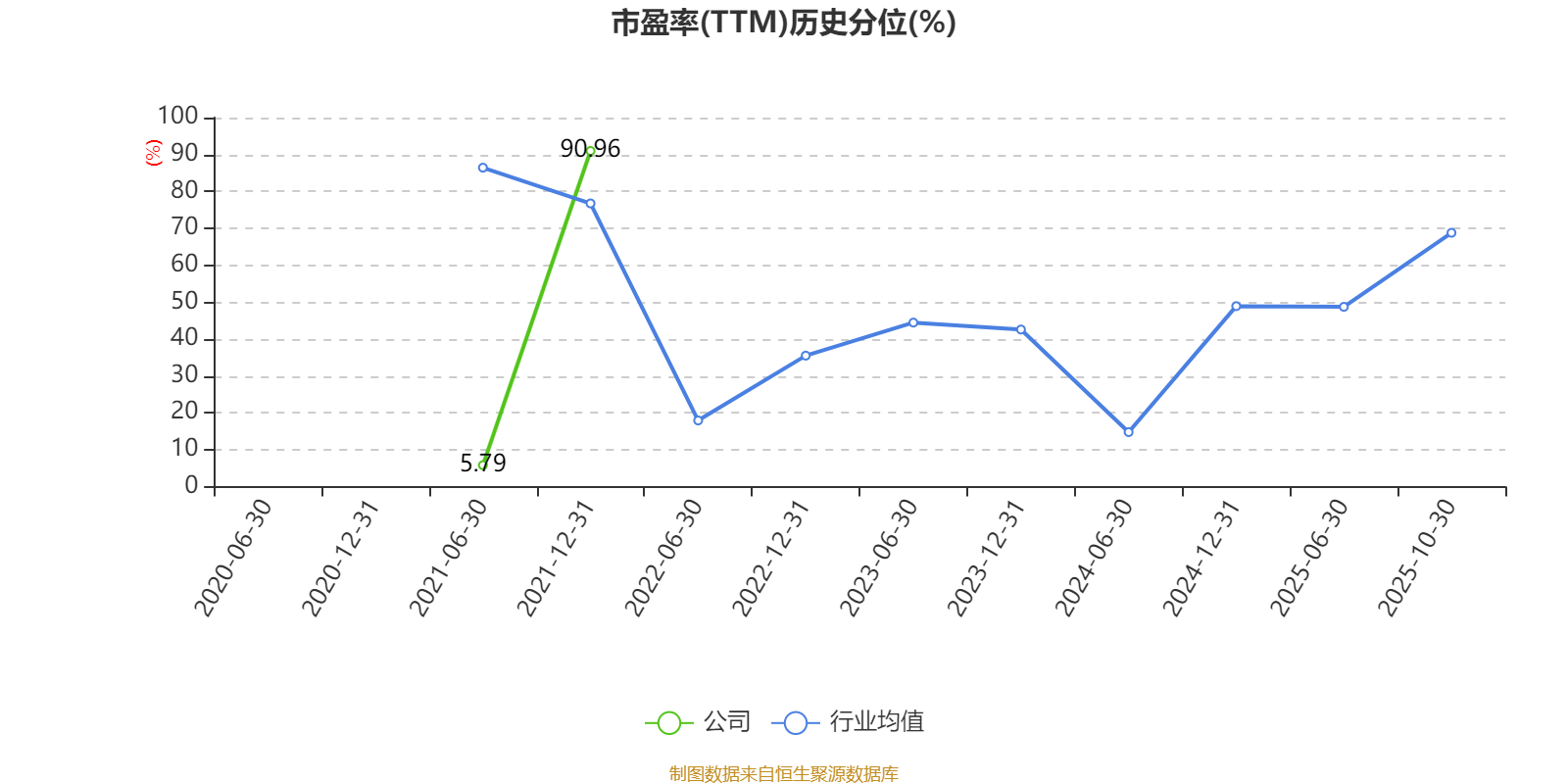 市盈率、市净率为负时,不显示当期分位数,会导致折线图中断。