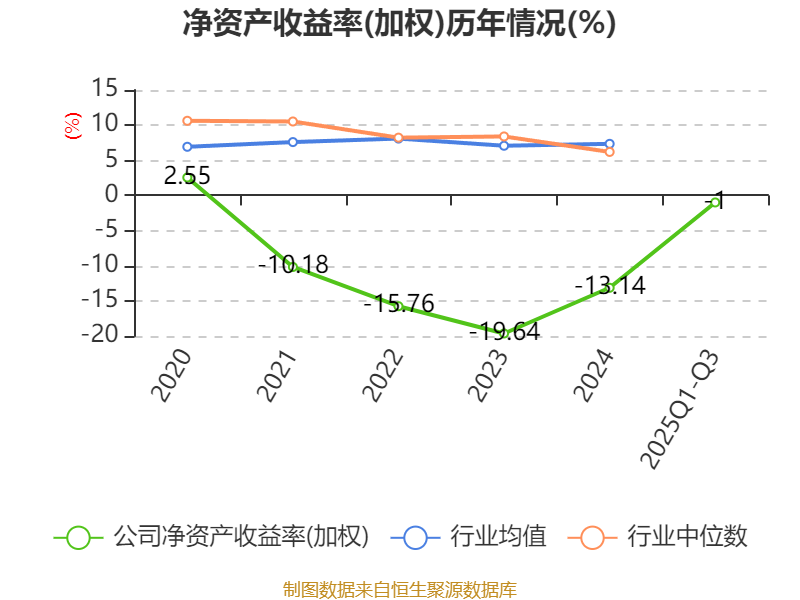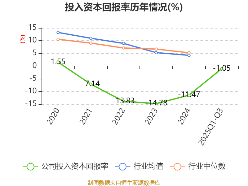 盈利能力方面, 2025年前三季度公司加权平均净资产收益率为-1%,同比上升1.45个百分点。公司2025年前三季度投入资本回报率为-1.05%,较上年同期上升1.36个百分点。