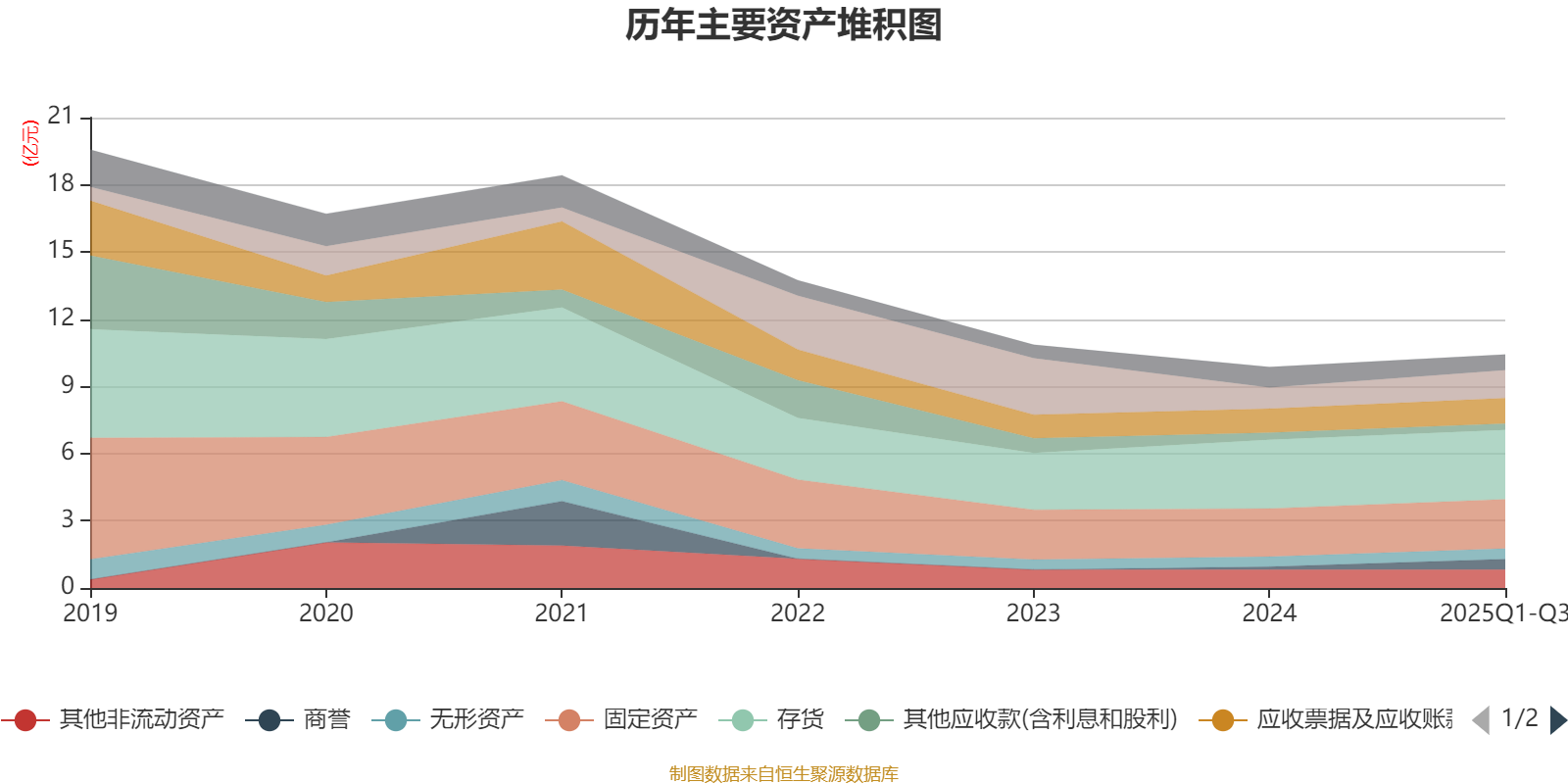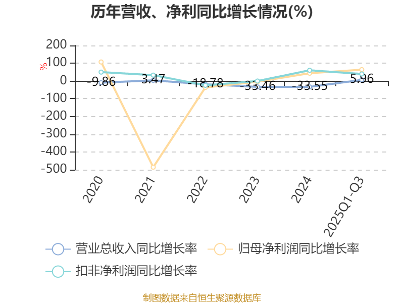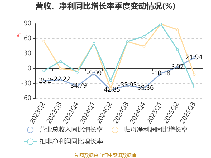 资产重大变化方面,截至2025年三季度末,公司商誉较上年末增加262.57%,占公司总资产比重上升3.19个百分点;交易性金融资产合计较上年末减少100%,占公司总资产比重下降2.54个百分点;货币资金较上年末增加31.67%,占公司总资产比重上升2.37个百分点;存货较上年末增加0.83%,占公司总资产比重下降1.43个百分点。