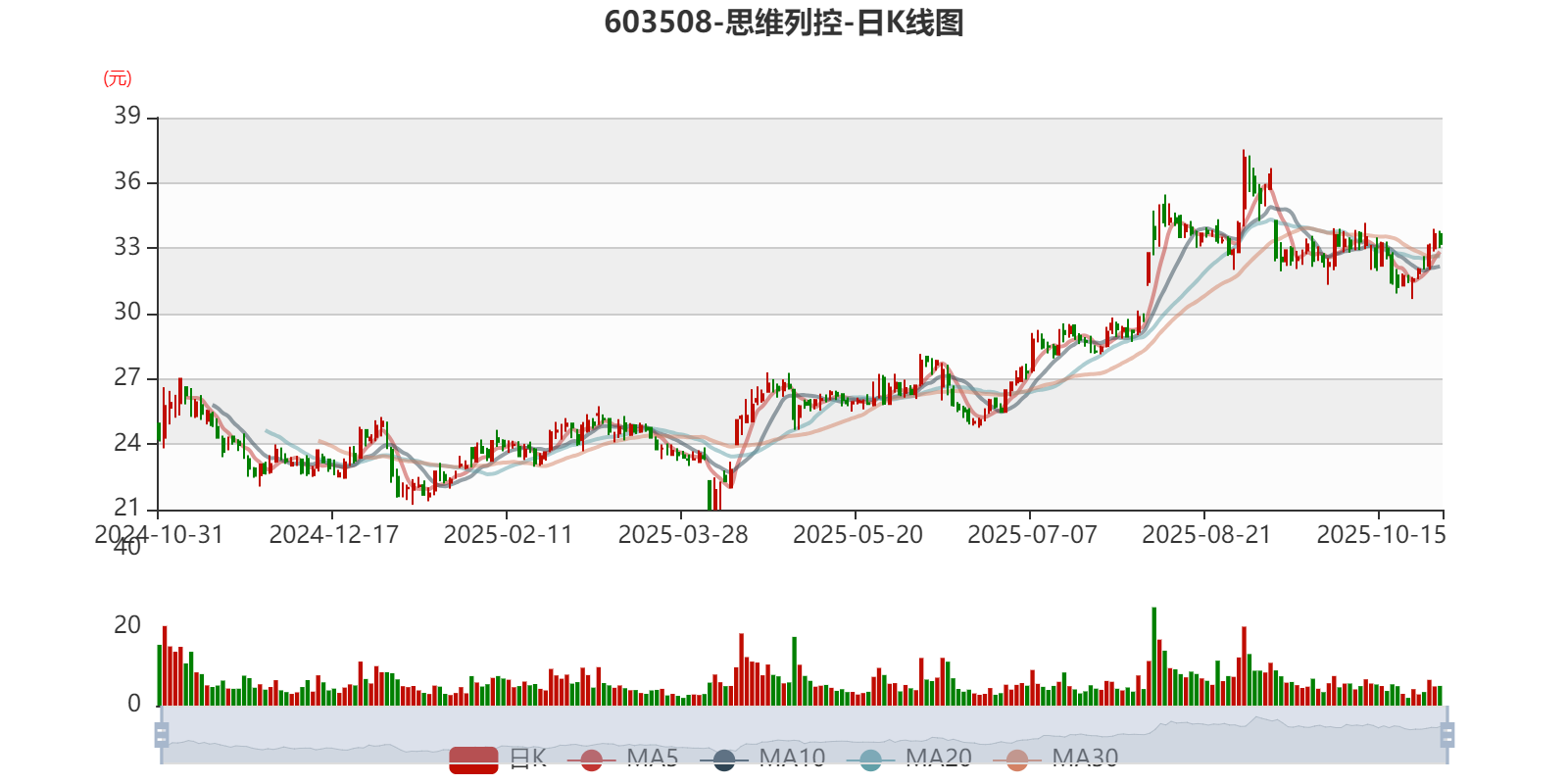 中证智能财讯思维列控(603508)10月31日披露2025年第三季度报告。前三季度公司实现营业总收入9.53亿元,同比增长5.25%;归母净利润3.96亿元,同比增长20.98%;扣非净利润3.94亿元,同比增长19.89%;经营活动产生的现金流量净额为4.98亿元,同比增长102.50%;报告期内,思维列控基本每股收益为1.04元,加权平均净资产收益率为8.51%。
