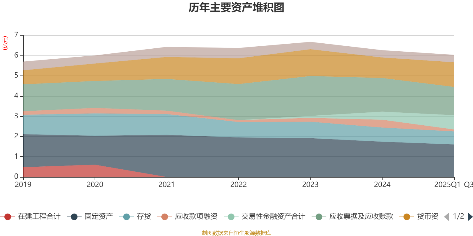 资产重大变化方面,截至2025年三季度末,公司交易性金融资产合计较上年末增加76.02%,占公司总资产比重上升5.3个百分点;应收款项融资较上年末减少74.88%,占公司总资产比重下降4.52个百分点;货币资金较上年末增加20%,占公司总资产比重上升3.97个百分点;应收票据及应收账款较上年末减少15.97%,占公司总资产比重下降3.39个百分点。