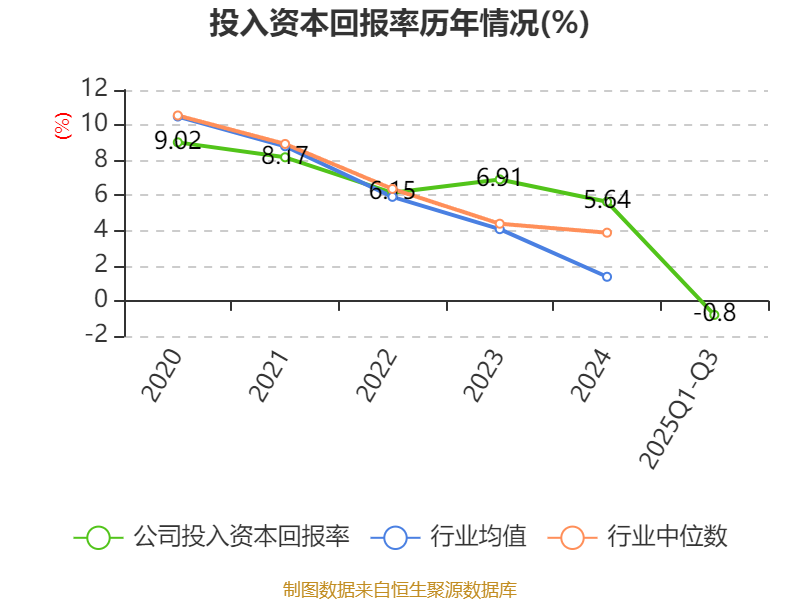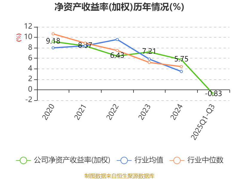盈利能力方面, 2025年前三季度公司加权平均净资产收益率为-0.83%,同比下降4.44个百分点。公司2025年前三季度投入资本回报率为-0.8%,较上年同期下降4.39个百分点。