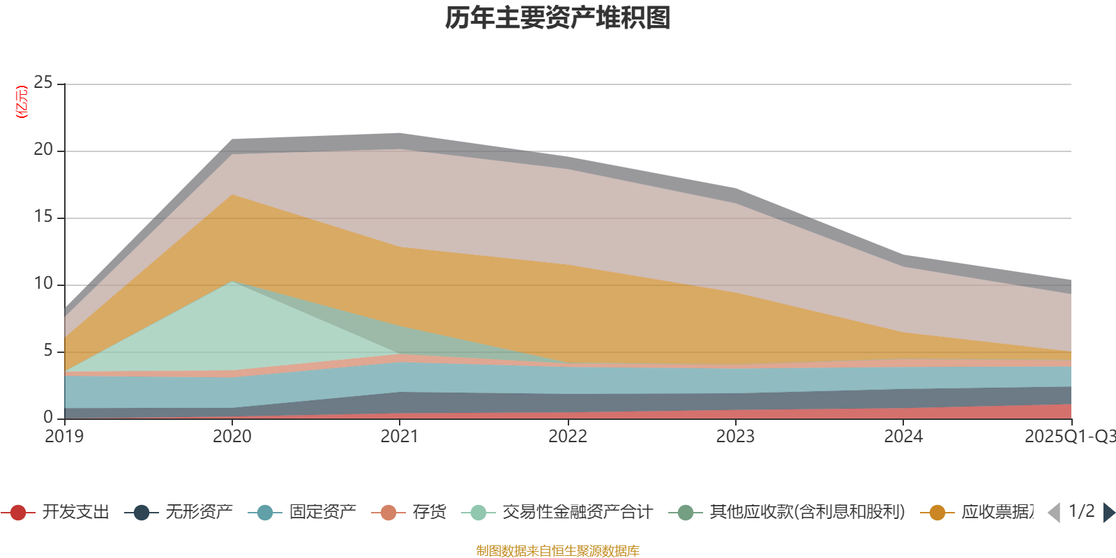 资产重大变化方面,截至2025年三季度末,公司应收票据及应收账款较上年末减少67.87%,占公司总资产比重下降9.96个百分点;开发支出较上年末增加38.07%,占公司总资产比重上升4个百分点;货币资金较上年末减少12.74%,占公司总资产比重上升1.27个百分点;固定资产较上年末减少8.36%,占公司总资产比重上升1.12个百分点。