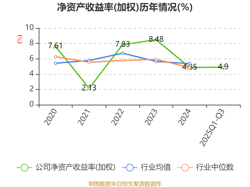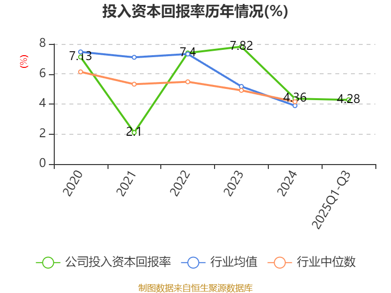 盈利能力方面, 2025年前三季度公司加权平均净资产收益率为4.9%,同比上升1.28个百分点。公司2025年前三季度投入资本回报率为4.28%,较上年同期上升0.94个百分点。