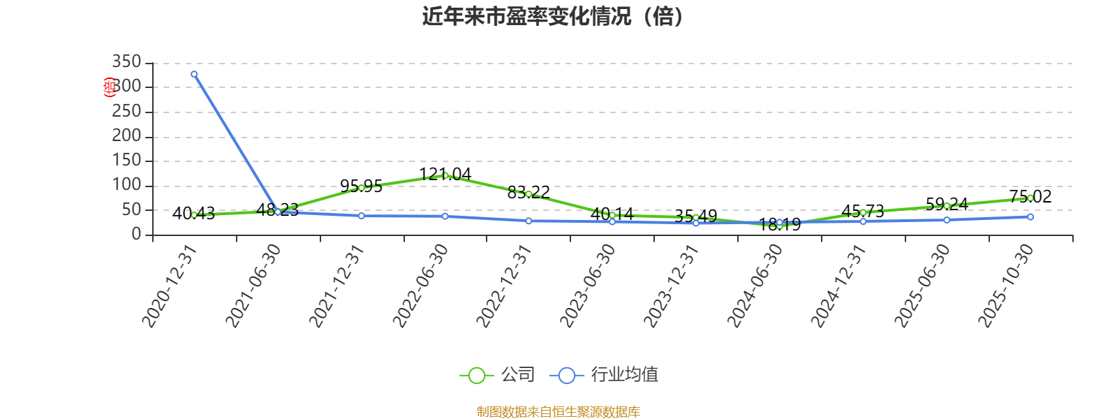 以10月30日收盘价计算,迪威尔目前市盈率(TTM)约为75.02倍,市净率(LF)约4.49倍,市销率(TTM)约6.96倍。