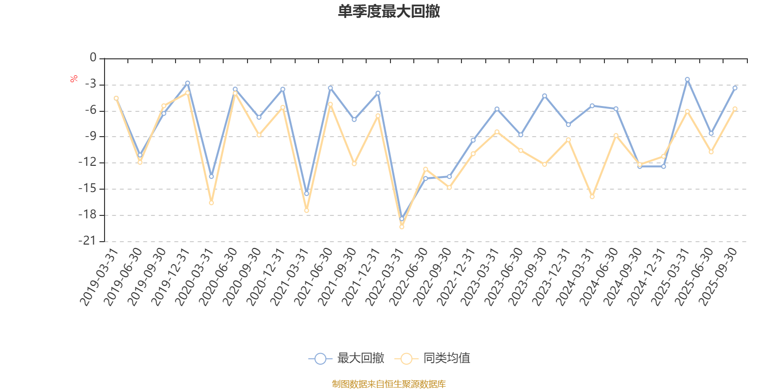 截至10月28日,基金近三年最大回撤为15.99%,同类可比基金排名5/363。单季度最大回撤出现在2022年一季度,为18.4%。