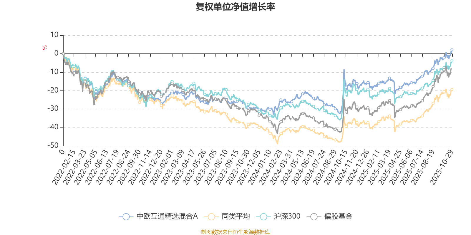 截至10月29日,中欧互通精选混合A近三个月复权单位净值增长率为12.43%,位于同类可比基金376/689;近半年复权单位净值增长率为25.39%,位于同类可比基金393/688;近一年复权单位净值增长率为23.37%,位于同类可比基金401/657;近三年复权单位净值增长率为38.97%,位于同类可比基金67/364。