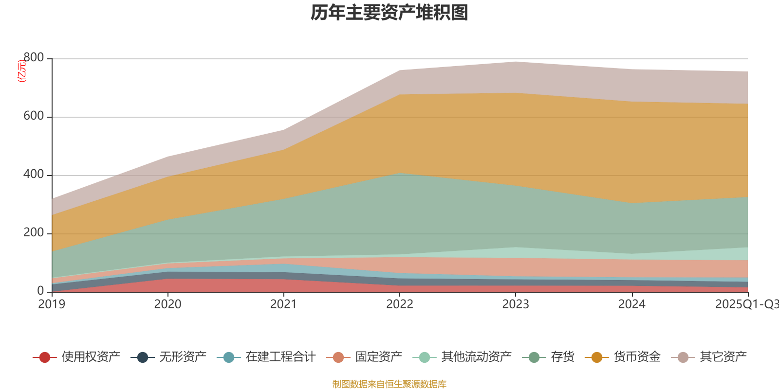 资产重大变化方面,截至2025年三季度末,公司货币资金较上年末减少8.18%,占公司总资产比重下降3.31个百分点;其他流动资产较上年末增加125.02%,占公司总资产比重上升3.3个百分点;在建工程合计较上年末增加52.93%,占公司总资产比重上升0.69个百分点;使用权资产较上年末减少25.7%,占公司总资产比重下降0.66个百分点。