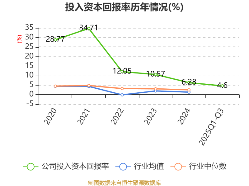 盈利能力方面, 2025年前三季度公司加权平均净资产收益率为5.5%,同比下降1.73个百分点。公司2025年前三季度投入资本回报率为4.6%,较上年同期下降1.27个百分点。