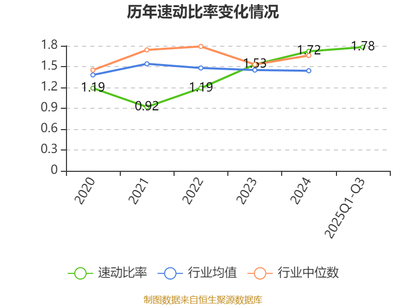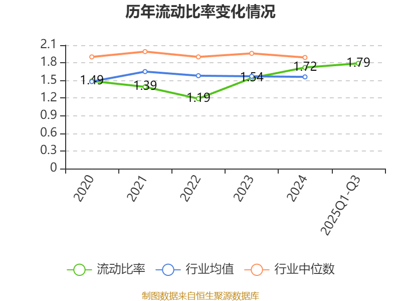 2025年前三季度,公司流动比率为1.79,速动比率为1.78。