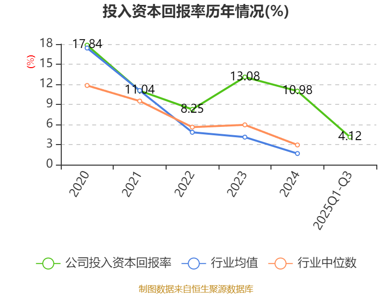 盈利能力方面, 2025年前三季度公司加权平均净资产收益率为4.94%,同比下降2.78个百分点。公司2025年前三季度投入资本回报率为4.12%,较上年同期下降1.98个百分点。