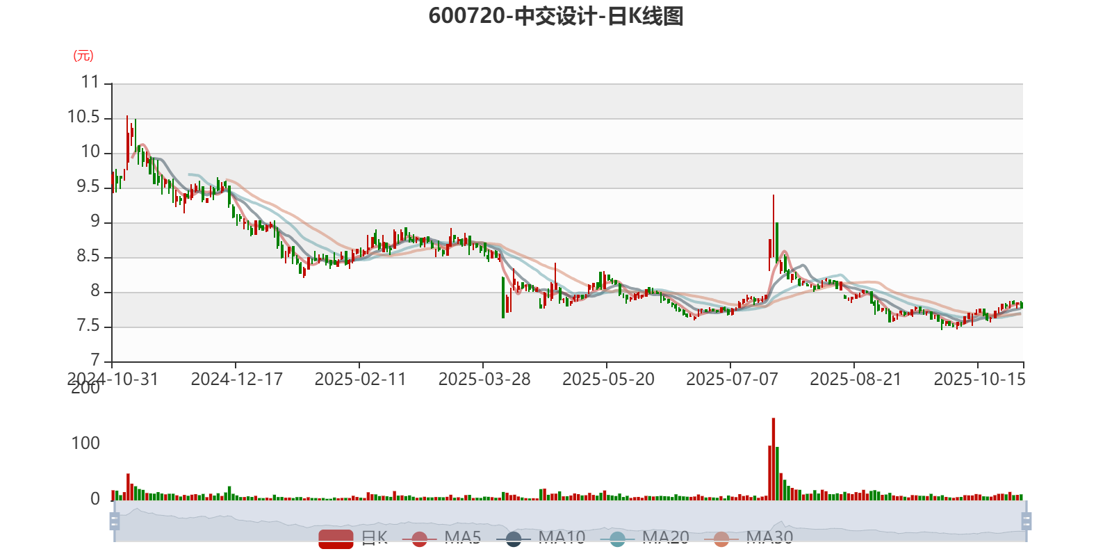 中证智能财讯中交设计(600720)10月31日披露2025年第三季度报告。前三季度公司实现营业总收入61.16亿元,同比下降9.09%;归母净利润7.52亿元,同比下降23.29%;扣非净利润6.85亿元,同比下降22.95%;经营活动产生的现金流量净额为-10.88亿元,上年同期为-13.85亿元;报告期内,中交设计基本每股收益为0.3278元,加权平均净资产收益率为4.94%。