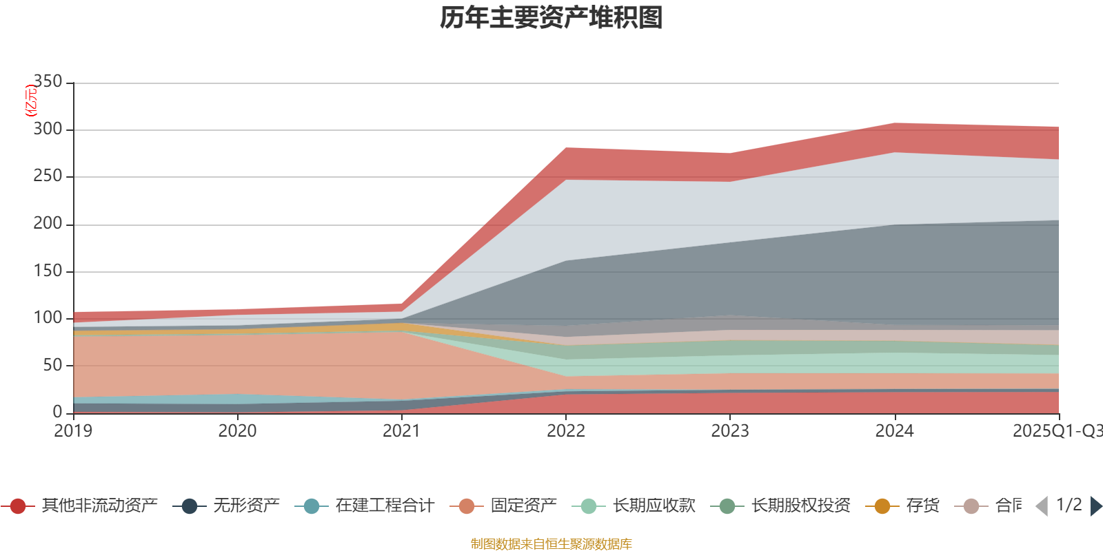 资产重大变化方面,截至2025年三季度末,公司货币资金较上年末减少16.09%,占公司总资产比重下降3.71个百分点;应收票据及应收账款较上年末增加4.82%,占公司总资产比重上升2.18个百分点;合同资产较上年末增加35.19%,占公司总资产比重上升1.39个百分点;长期应收款较上年末减少11.61%,占公司总资产比重下降0.74个百分点。