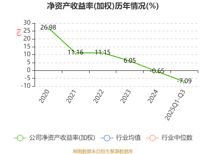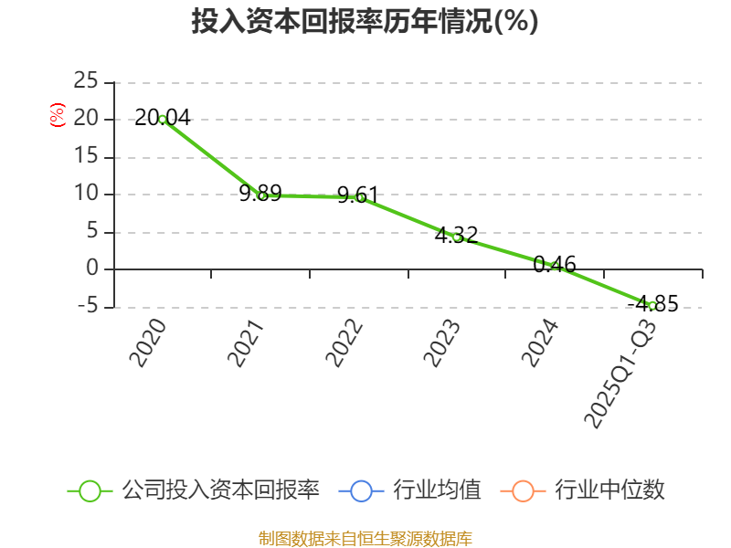 盈利能力方面, 2025年前三季度公司加权平均净资产收益率为-7.09%,同比下降1.72个百分点。公司2025年前三季度投入资本回报率为-4.85%,较上年同期下降2.06个百分点。