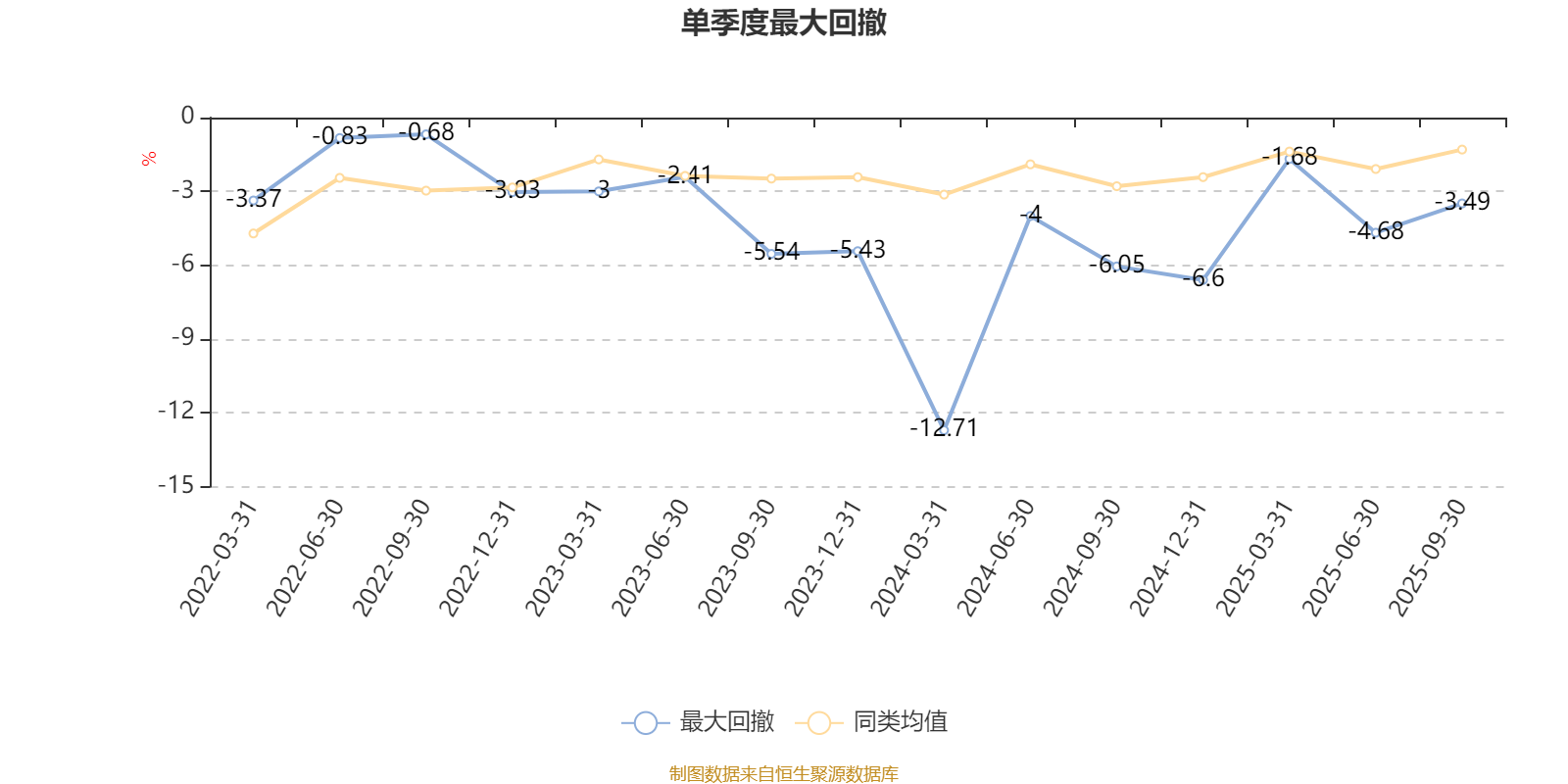 截至10月29日,基金近三年最大回撤为19.28%,同类可比基金排名516/534。单季度最大回撤出现在2024年一季度,为12.71%。