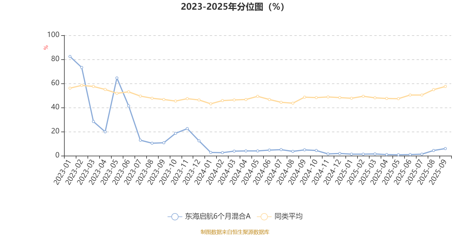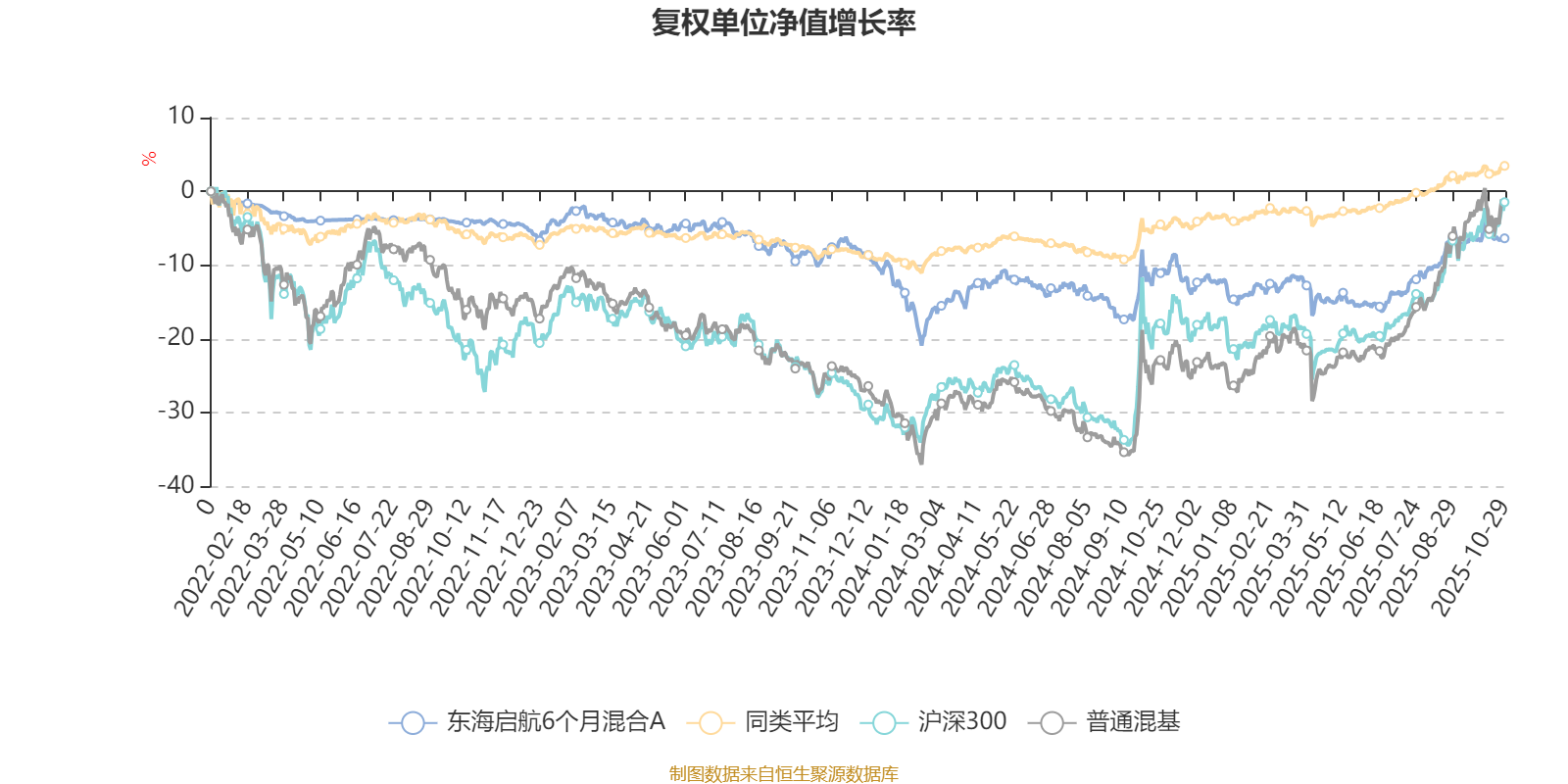 截至10月29日,东海启航6个月混合A近三个月复权单位净值增长率为4.93%,位于同类可比基金123/629;近半年复权单位净值增长率为10.23%,位于同类可比基金99/629;近一年复权单位净值增长率为4.82%,位于同类可比基金487/623;近三年复权单位净值增长率为-1.99%,位于同类可比基金544/557。