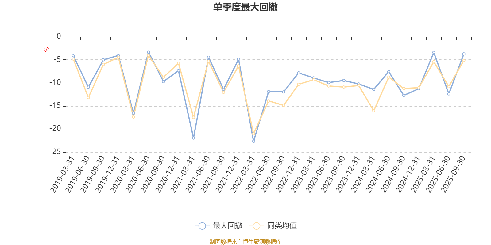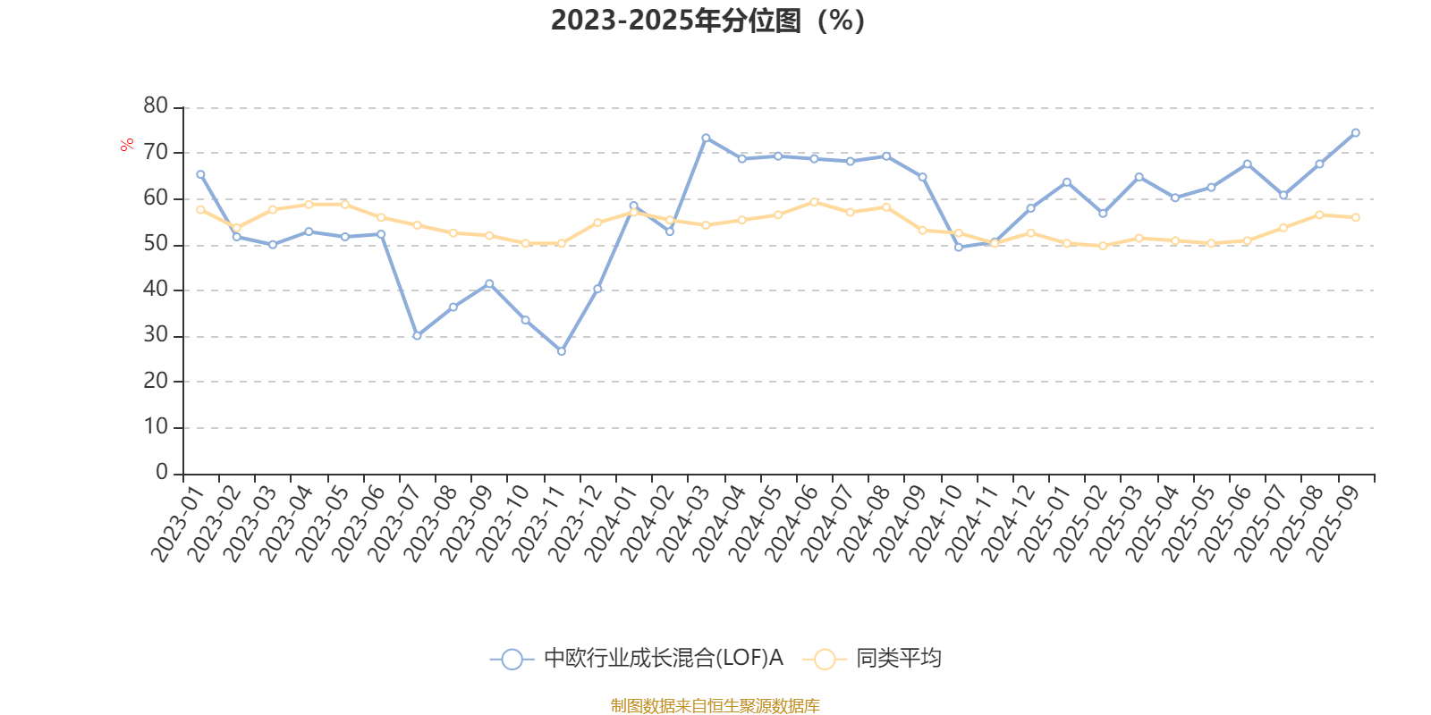 通过所选区间该基金净值增长率分位图,可以观察该基金与同类基金业绩比较情况。图为坐标原点到区间内某时点的净值增长率在同类基金中的分位数。