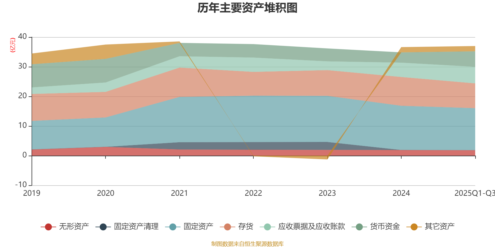 资产重大变化方面,截至2025年三季度末,公司货币资金较上年末增加51.99%,占公司总资产比重上升4.76个百分点;存货较上年末减少13.82%,占公司总资产比重下降3.9个百分点;固定资产较上年末减少5.12%,占公司总资产比重下降2.49个百分点;应收票据及应收账款较上年末增加14.81%,占公司总资产比重上升1.81个百分点。