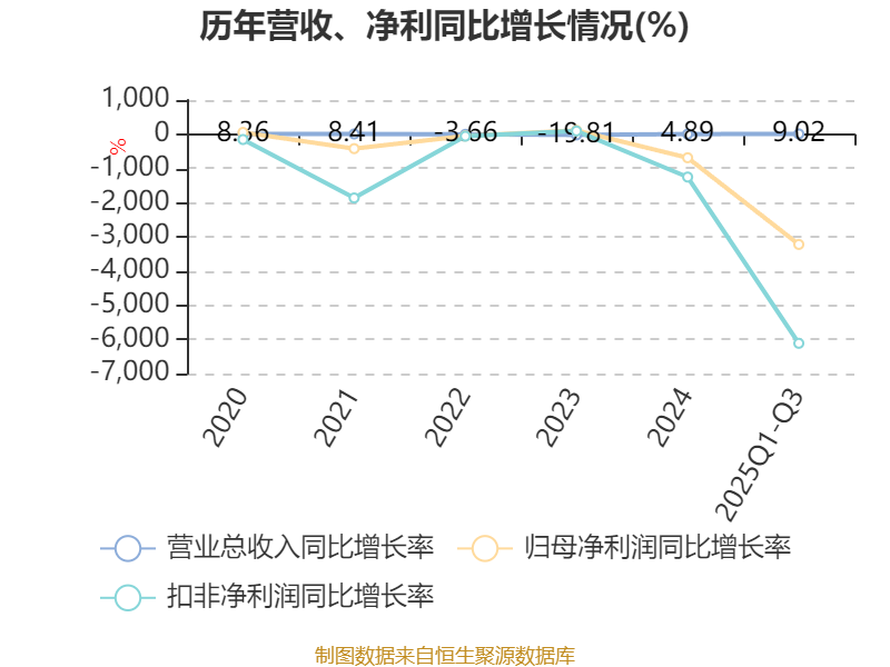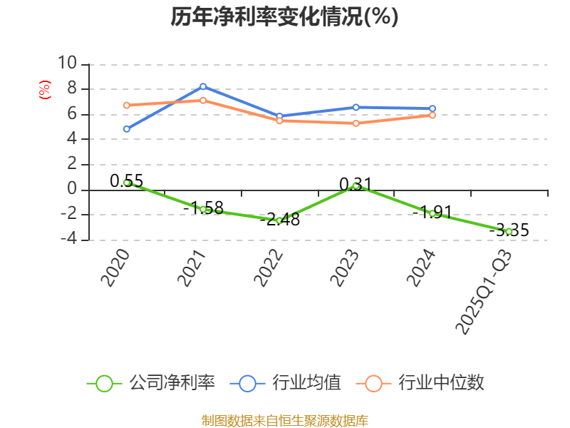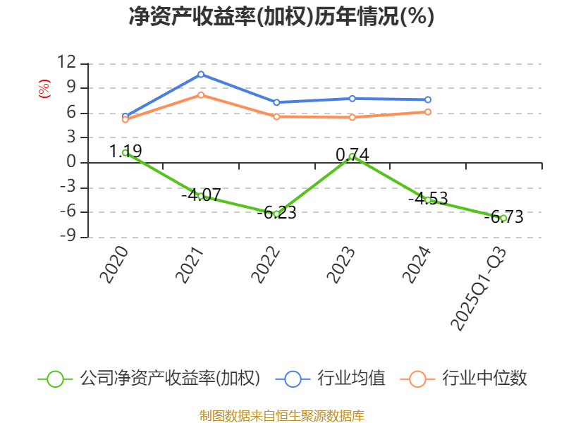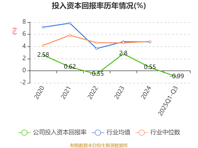 盈利能力方面, 2025年前三季度公司加权平均净资产收益率为-6.73%,同比下降6.96个百分点。公司2025年前三季度投入资本回报率为-0.99%,较上年同期下降2.79个百分点。