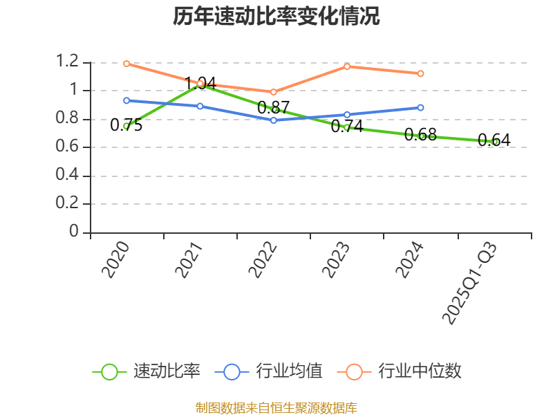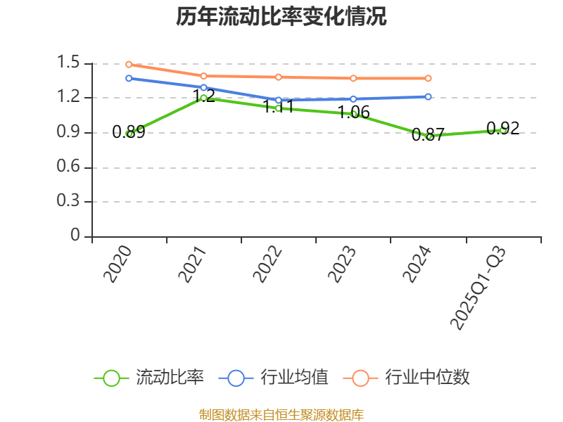2025年前三季度,公司流动比率为0.92,速动比率为0.64。