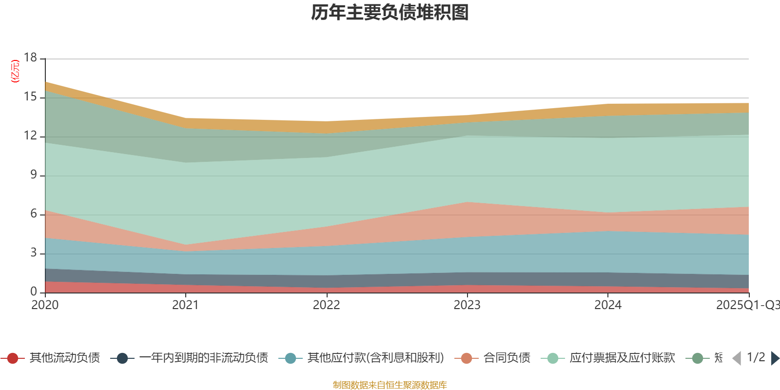负债重大变化方面,截至2025年三季度末,公司合同负债较上年末增加50.78%,占公司总资产比重上升4.12个百分点;应付票据及应付账款较上年末减少3.37%,占公司总资产比重下降1.62个百分点;其他流动负债较上年末减少30.85%,占公司总资产比重下降0.88个百分点;其他应付款(含利息和股利)较上年末减少3.04%,占公司总资产比重下降0.84个百分点。