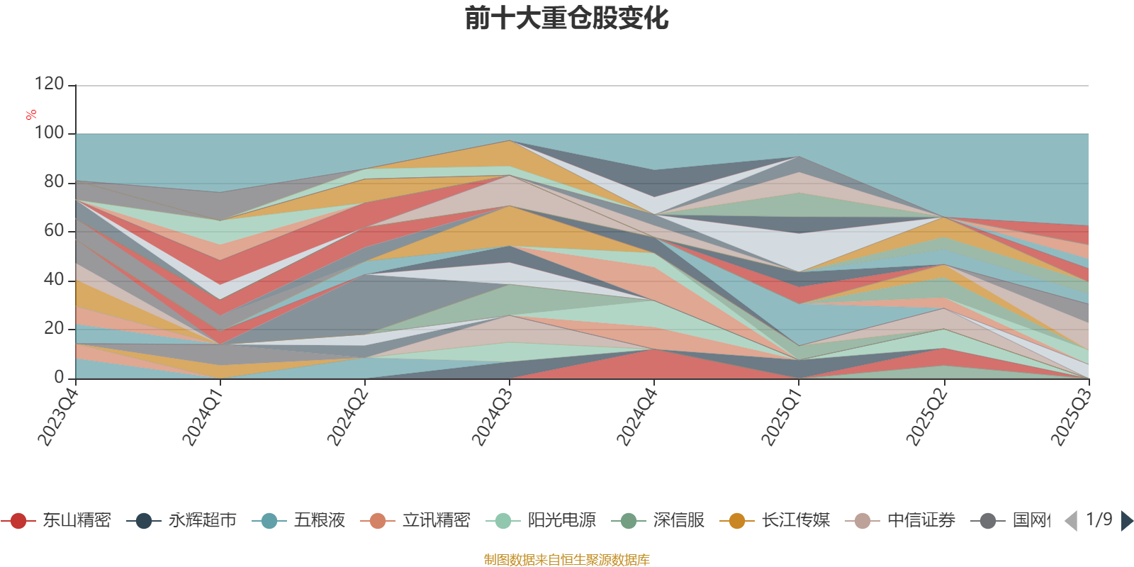 该基金持股集中度较高,近2年前十大重仓股集中度长期超过60%。截至2025年三季度末,基金十大重仓股分别是新华保险、浪潮信息、寒武纪、中国国航、中国东航、南方航空、华夏航空、能科科技、中科飞测、金诚信。