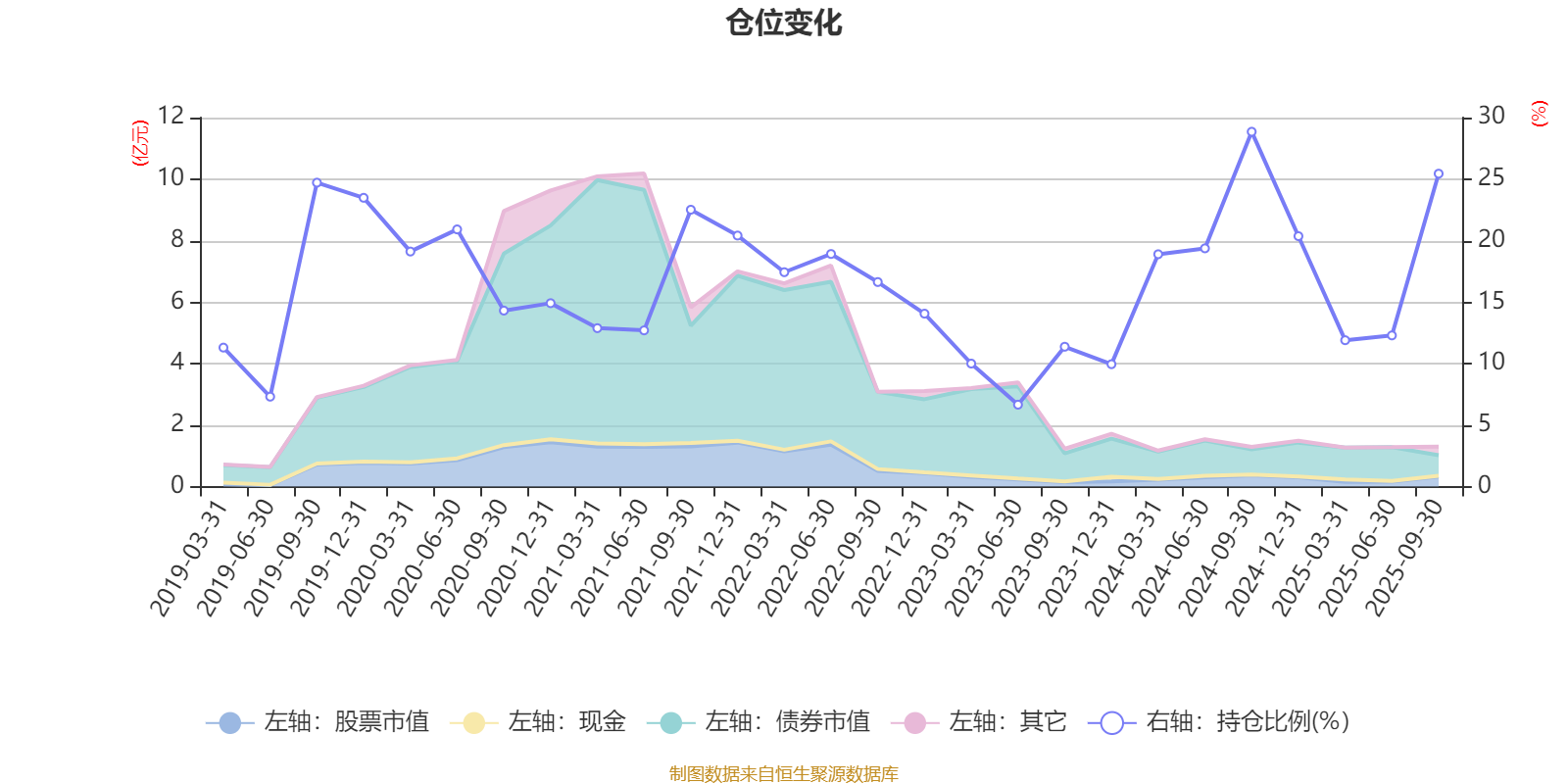 据定期报告数据统计,近三年平均股票仓位为15.76%,同类平均为19.14%。2024年三季度末基金达到28.85%的最高仓位,2023年上半年末最低,为6.66%。