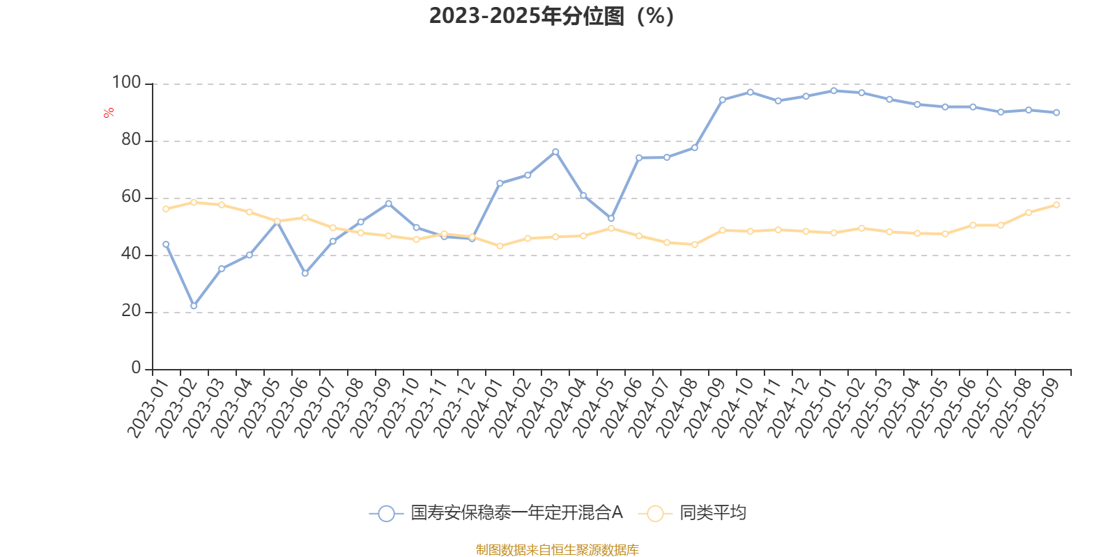 通过所选区间该基金净值增长率分位图,可以观察该基金与同类基金业绩比较情况。图为坐标原点到区间内某时点的净值增长率在同类基金中的分位数。