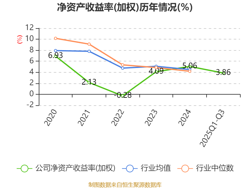 盈利能力方面, 2025年前三季度公司加权平均净资产收益率为3.86%,同比下降0.13个百分点。公司2025年前三季度投入资本回报率为3.33%,较上年同期持平。