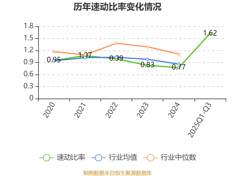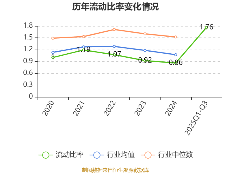 2025年前三季度,公司流动比率为1.76,速动比率为1.62。