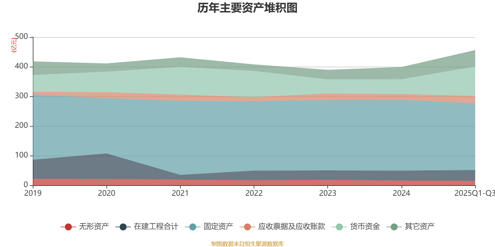 资产重大变化方面,截至2025年三季度末,公司固定资产较上年末减少5.69%,占公司总资产比重下降10.49个百分点;货币资金较上年末增加97.91%,占公司总资产比重上升9.19个百分点;其他应收款(含利息和股利)较上年末增加4202.42%,占公司总资产比重上升1.06个百分点;无形资产较上年末减少6.46%,占公司总资产比重下降0.73个百分点。